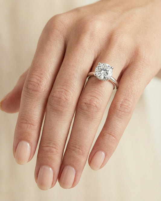 For round diamonds, we go further. Every RockHer Select round is a verified Hearts & Arrows diamond — an optical precision grade achieved by fewer than 1% of all round diamonds cut worldwide. It requires near-perfect symmetry in every facet. You will see it in the light performance from across a room.