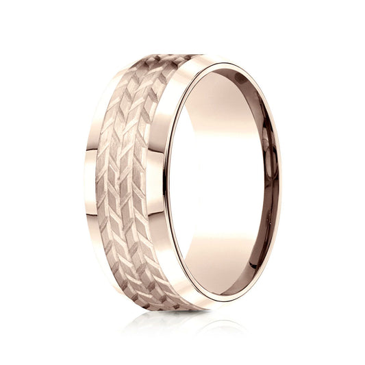 Rose gold bands pair beautifully with modern solitaire or vintage-inspired engagement rings. Women often choose pavé or eternity styles for added sparkle, while men prefer wider, brushed finishes for a bold look. Matching rose gold bands for couples create a romantic, cohesive set. For variety, see women’s wedding bands and men’s wedding bands.