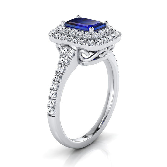 Sapphire engagement rings are perfect for those who want a distinctive, colorful design. The deep blue sapphire pairs beautifully with white diamonds in halo or side-stone settings, creating striking contrast. Many clients personalize their design through our custom engagement ring service, crafting a ring that is truly one-of-a-kind.