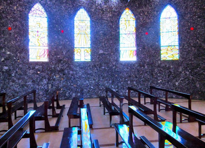 In the Brazilian town of Ametista do Sul, St Gabriel’s Church is decorated with 40 tons of amethyst crystals covering the walls. The baptismal font is crafted from a large amethyst geode.