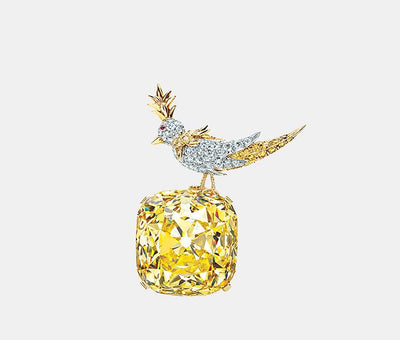 The Tiffany Diamond has had many settings including the whimsical “Bird in a Rock” setting by Jean Schlumberger. For Tiffany’s 175th anniversary in 2012 the Tiffany Diamond was reset in a magnificent necklace featuring 100 carats of white diamonds.