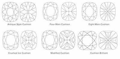 The variety that we love so much means it is a bit more complicated to compare cushion cut diamonds than any other diamond shape. Here are just a few of the different facet patterns of cushion cut diamonds that you’ll see on the market.