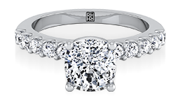 The signature cushion cut with hearts and arrows has been formulated to achieve maximum brilliance and fire.