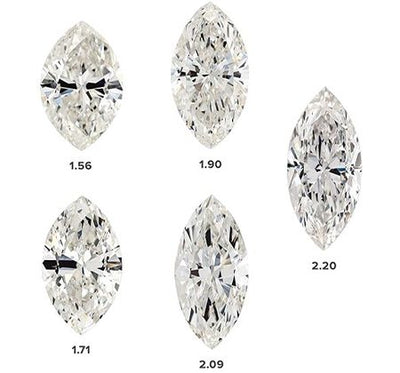 All three are much larger in appearance than the round brilliant and less per carat for the same quality. The marquise cut is the most affordable