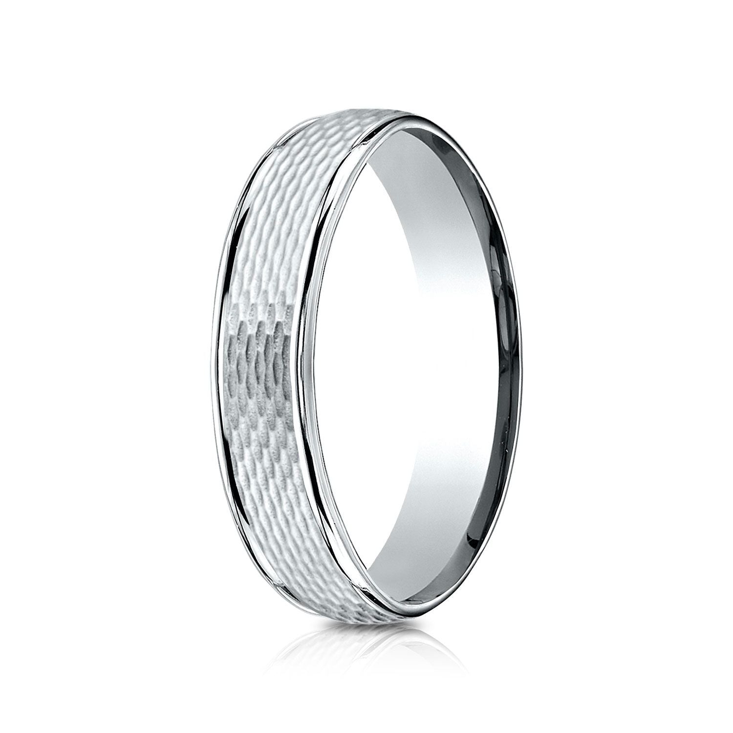 14 Karat White Gold 4.5mm Comfort-fit Round Edge Mesh Center Design Band