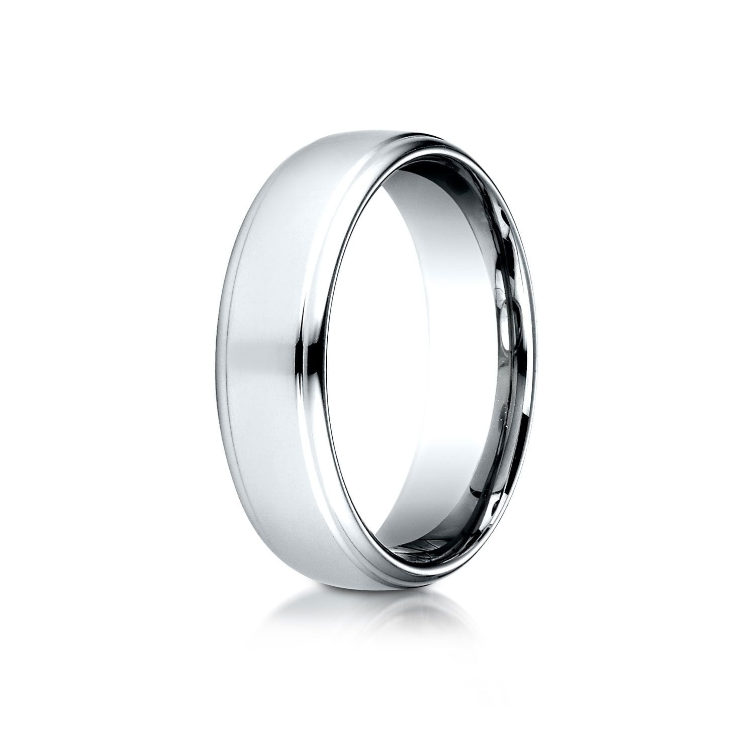 14 Karat White Gold 6.5mm Comfort-fit Drop Edge High Polish Design Band