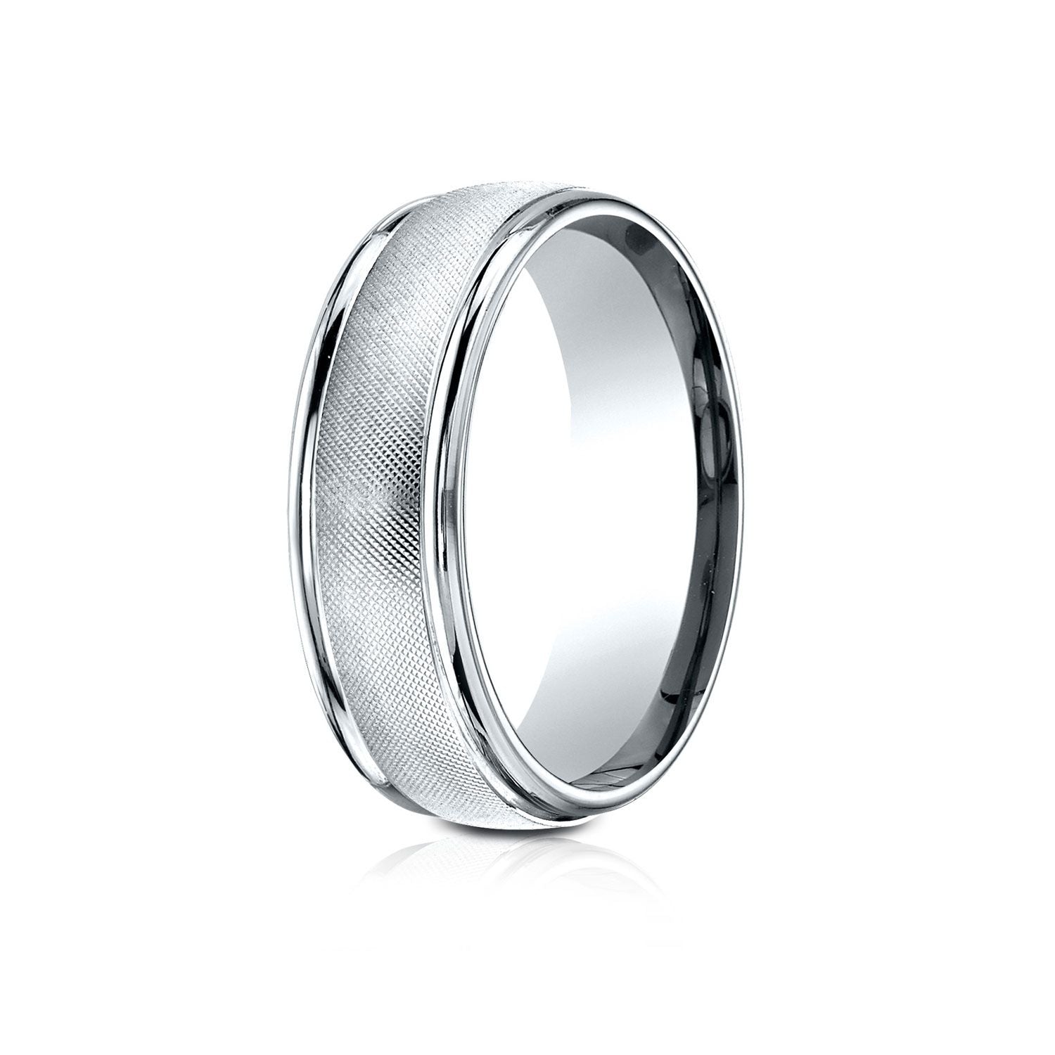 14 Karat White Gold 7mm Comfort-fit Florentine Center High Polish Round Edge Design Band
