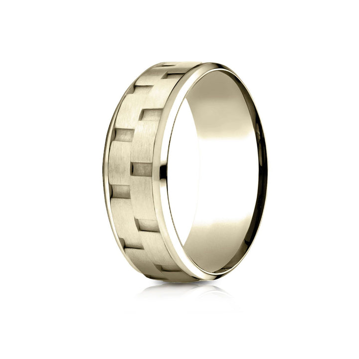 14 Karat Yellow Gold 8mm Comfort-fit Drop Bevel Sandblasted Satin Finish Chain Link Design Band