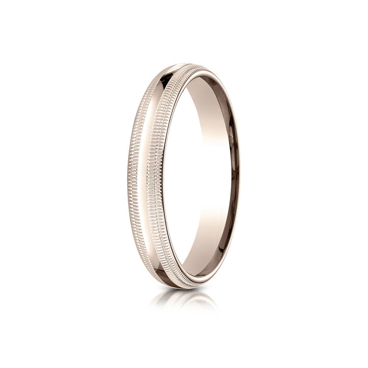 This Beautiful 14 Karat Rose Gold 4mm Band Features A Slightly Domed Surface With Double Milgrain And Comfort-fit On The Inside For Unforgettable Comfort.