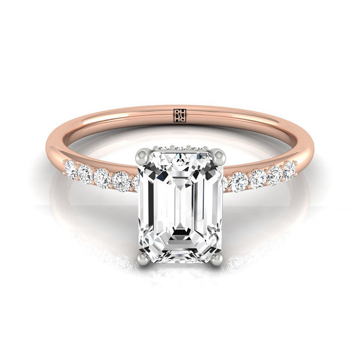 14k Rose Gold Emerald Double Hidden Halo Quarter Shank Engagement Ring - 1/25ctw