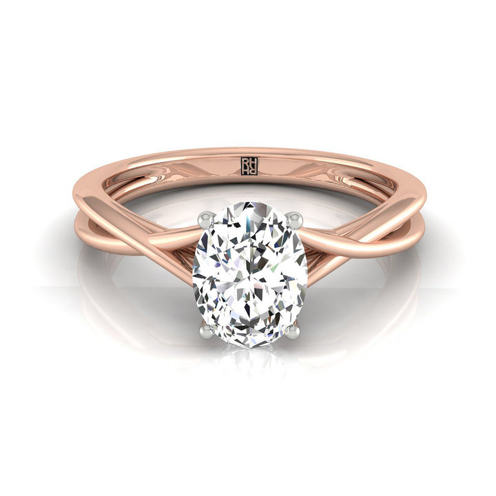 14k Rose Gold Oval Twisted Shank Double Halo Solitaire Engagement Ring