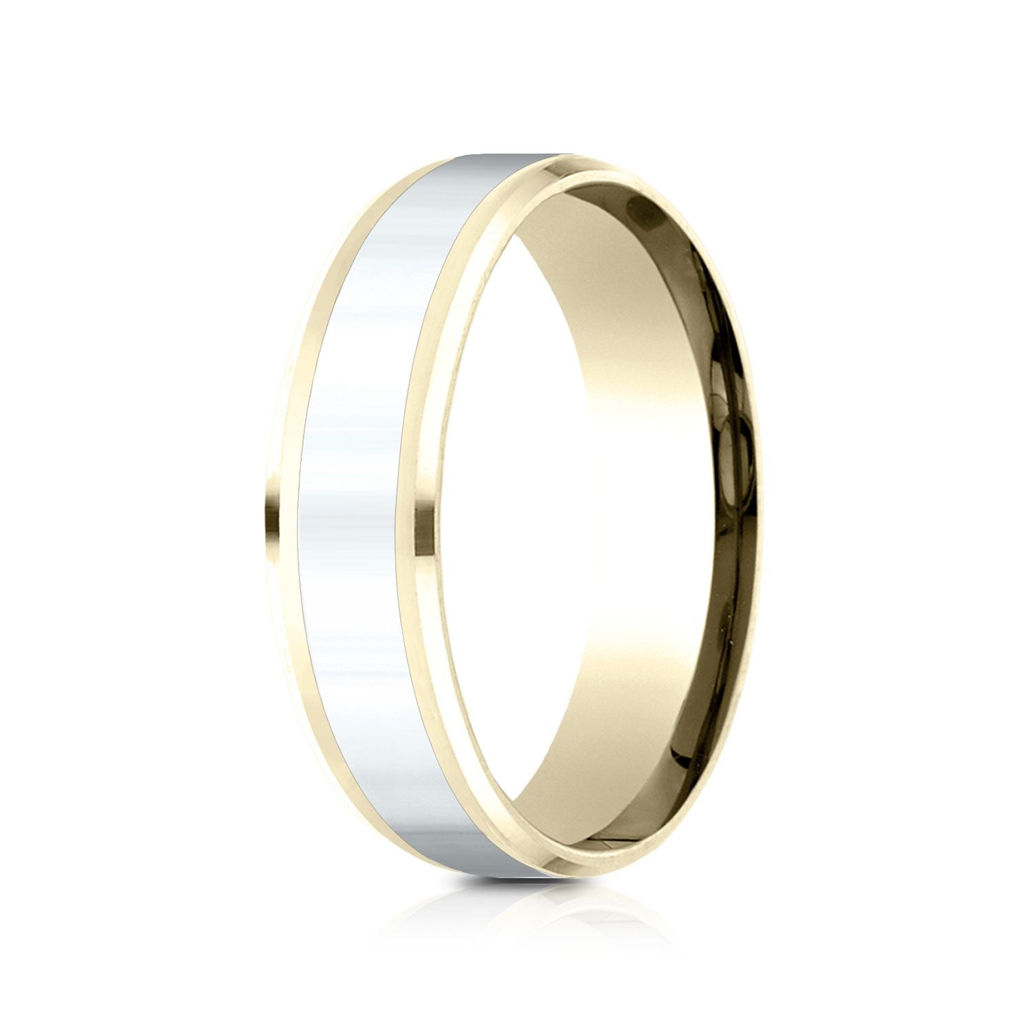 Elegantly Simple, This 14 Karat Two Tone 6mm Band Features Drop Bevel Edges And A High Polish Finish
