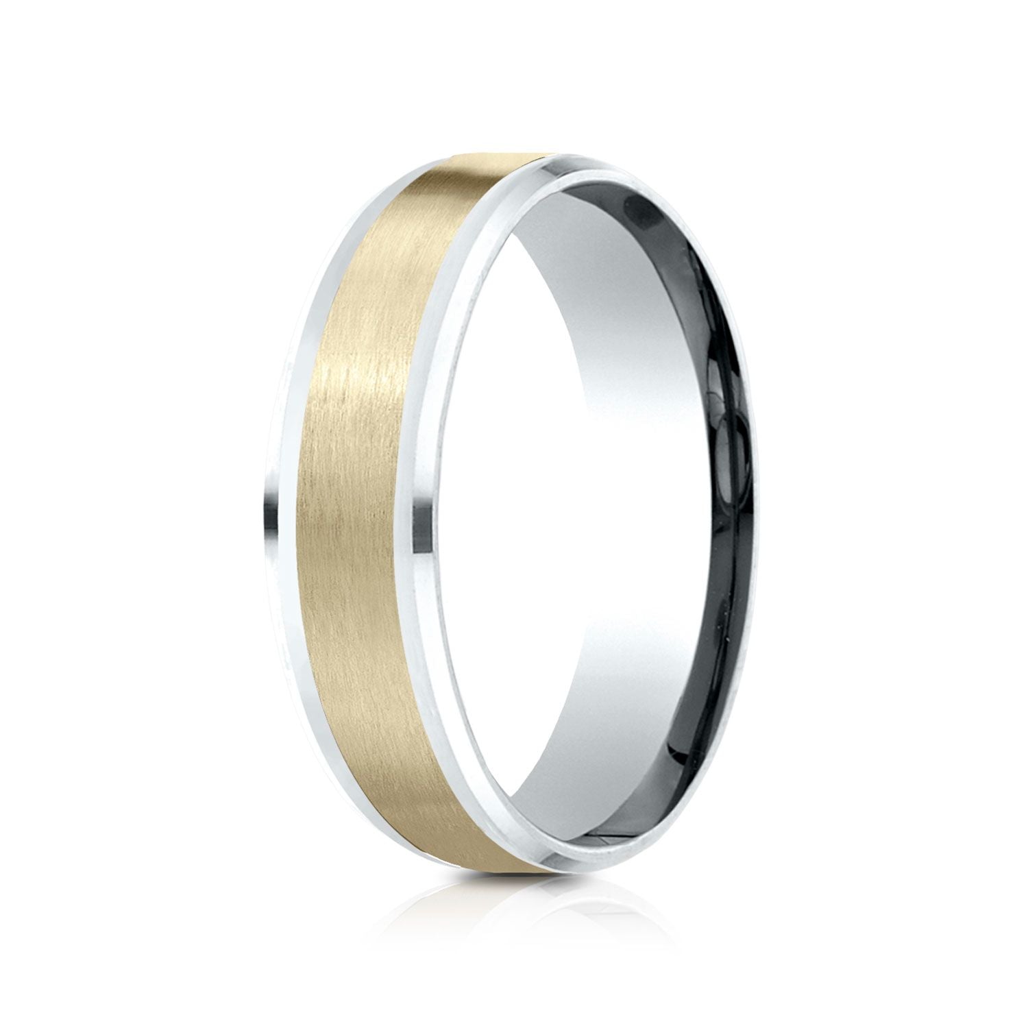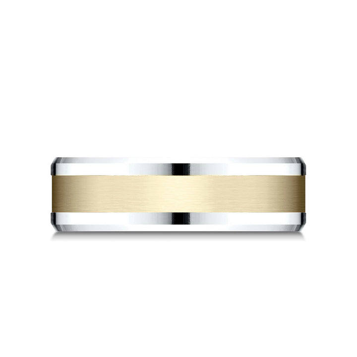 Sleek And Understated, This 14 Karat Two Tone 6mm Comfort Fit Design Band Features A Beautiful Satin Finish Center And High Polish Drop Bevel Edges