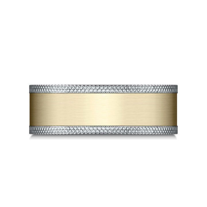 14k Two Tone 8mm Comfort Fit Knurled Edge Satin Finish Design Band