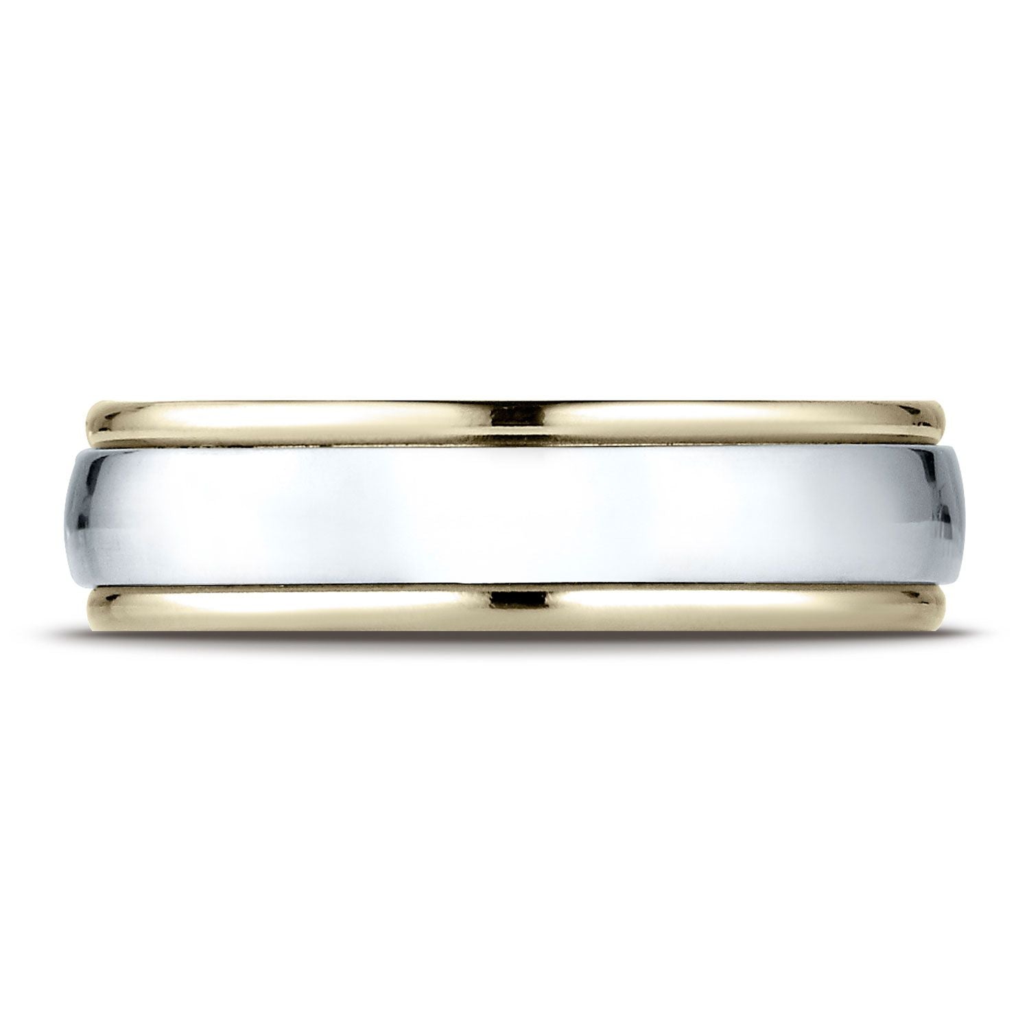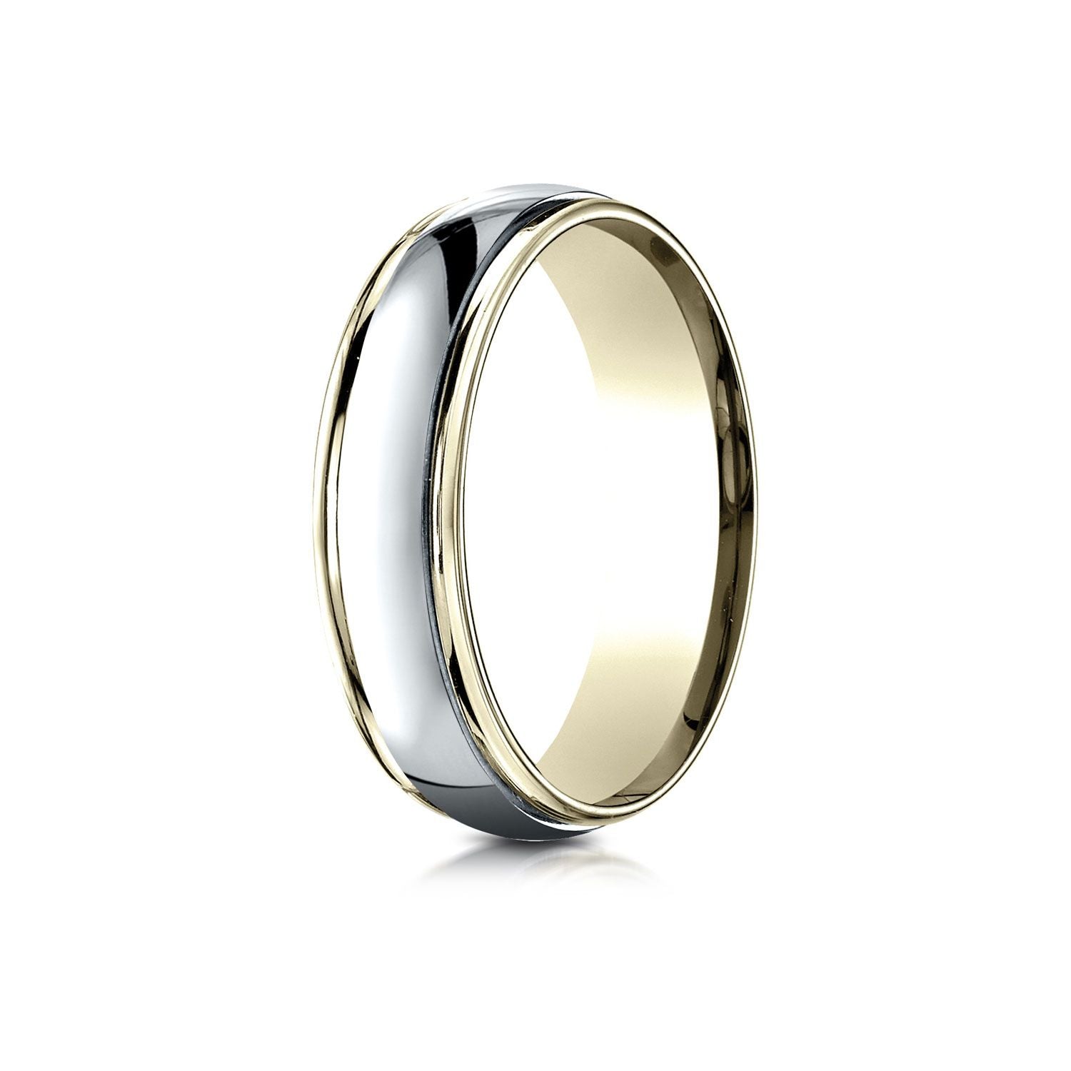This Incredible 14 Karat Gold Two-tone 6mm Comfort-fit High Polished Carved Design Band Features 14 Karat White Along The Center With 14 Karat Yellow Along The Edges That Is Both Sleek And Subtle.