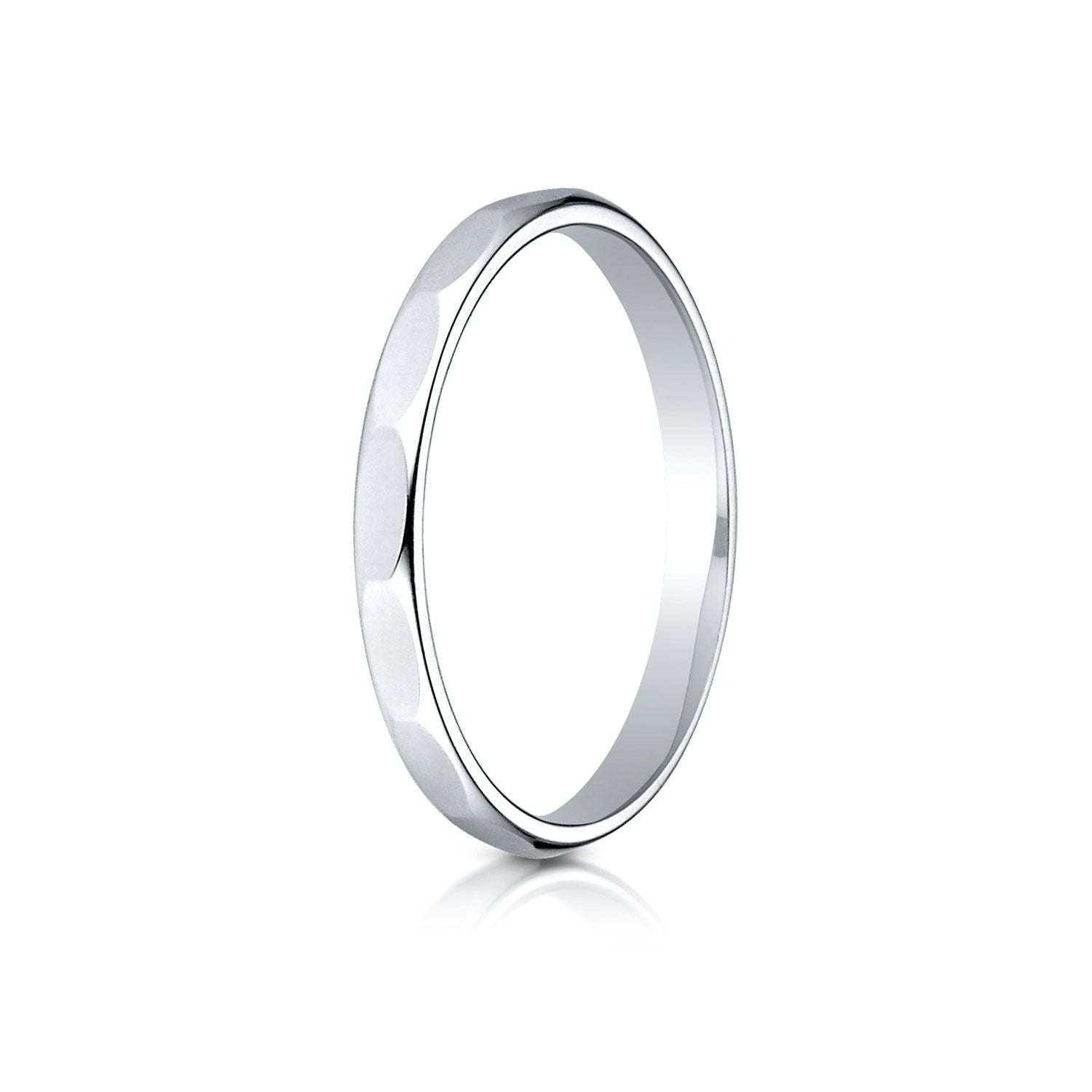 This Delicate 14 Karat White 2mm Band Features Unique Faceting For A Stunning Look..
