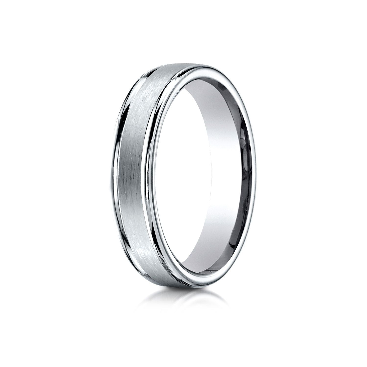 This 14 Karat White 4mm Comfort-fit Carved Design Band Features A Satin Finish With A High Polished Round Edge For Noticeable Style.
