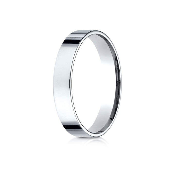 This Beautiful 14 Karat White Gold 4mm Band Features A Flat Surface For A More Modern Look. It Also Features A Comfort-fit On The Inside For Unforgettable Comfort.