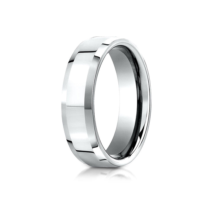 This Stylish 14 Karat White 6mm Comfort-fit High Polished Carved Design Band Features A Slight Beveled Edge For A Classic Look.