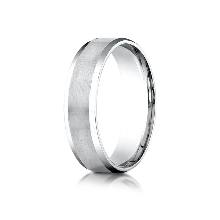 This 14 Karat White 6mm Comfort-fit Satin-finished Carved Design Band Features A High Polished Beveled Edge For A Perfect Balance Of Style And Class.