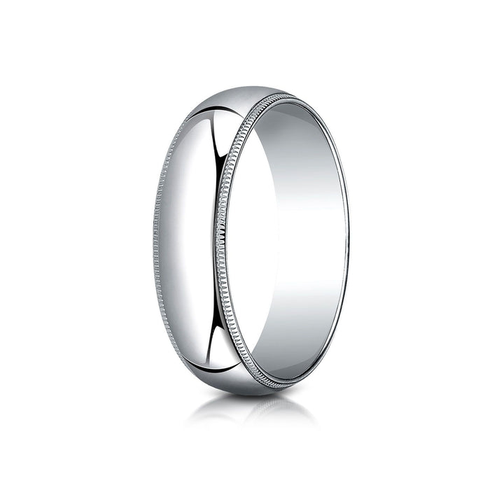 This Remarkable 14 Karat White Gold 6mm Band Features A Slightly Domed Surface With Milgrain Edges And Is Flat On The Inside For A Traditional Profile.