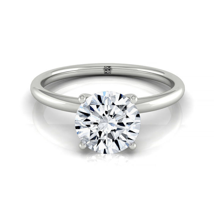 The Chic Design Of This 14k White Gold Round Engagement Ring With 8 Prong Set Diamonds Showcases A Sparkling Hidden Halo Of Diamonds That Encircles The Center Gem, Adding A Touch Of Elegance To The Piece. The Petite Band Perfectly Complements The Gallery And Enhances The Ring's Overall Sophistication.