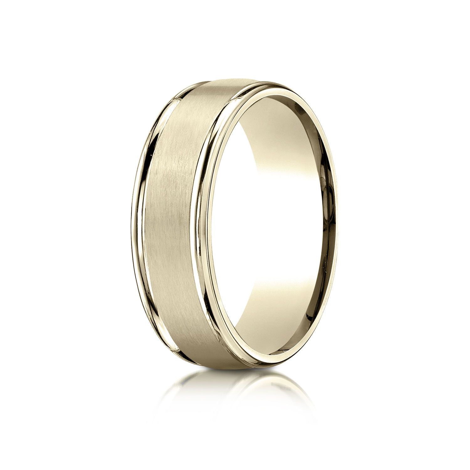 This 14 Karat Yellow 7mm Comfort-fit Carved Design Band Features A Satin Finish With A High Polished Round Edge For Noticeable Style.