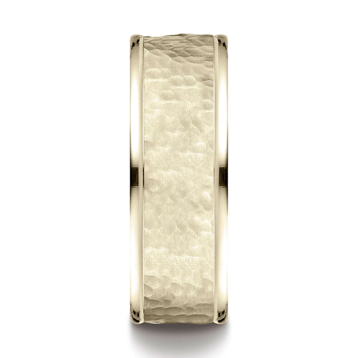 14k Yellow Gold Comfort Fit 8mm High Polish Edge Hammered Center Design Band