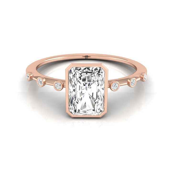 14kr Bezel Set Radiant Engagement Ring With 6 Bezel Set Round Diamonds On Shank