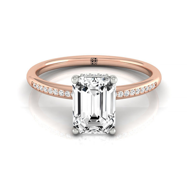 14kr Emerald Engagement Ring With High Hidden Halo With 34 Prong Set Round Diamonds