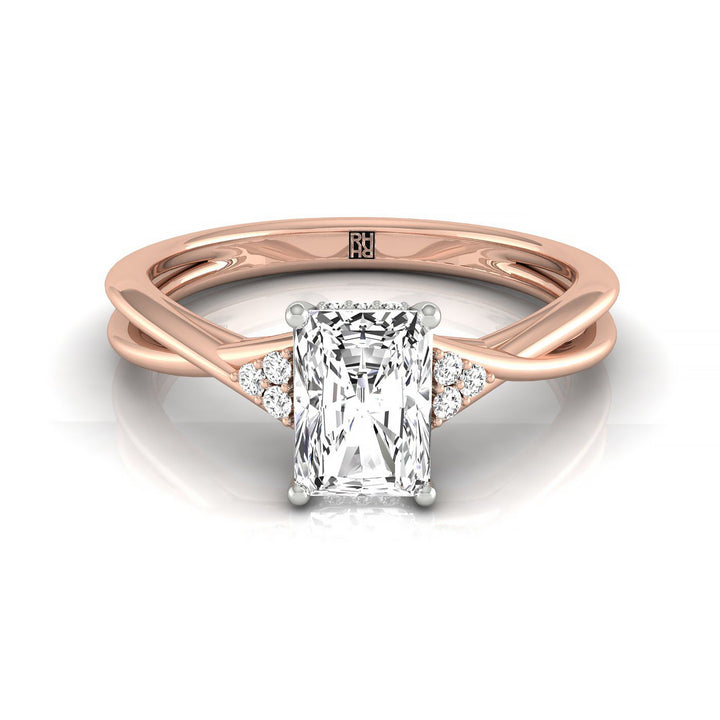 14kr Fancy Radiant Twisted Shank Double Hidden Halo Engagement Ring With 44 Prong Set Round Diamonds Sz 7.5