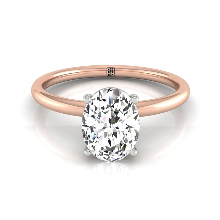 14kr Oval Solitaire Engagement Ring With Lower Hidden Halo Curved With 8 Prong Set Round Diamonds