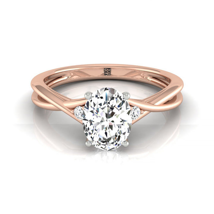 14kr Oval Twisted Shank Single Hidden Halo Engagement Ring With 18 Prong Set Round Diamonds Sz 7.5