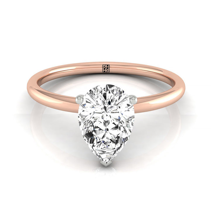 14kr Pear Solitaire Engagement Ring With Hidden Halo With 8 Prong Set Round Diamonds