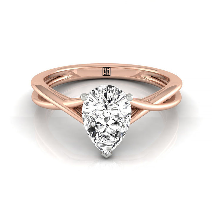 14kr Pear Twisted Shank Hidden Halo Solitaire Engagement Ring With 17 Prong Set Round Diamonds Sz 7.5