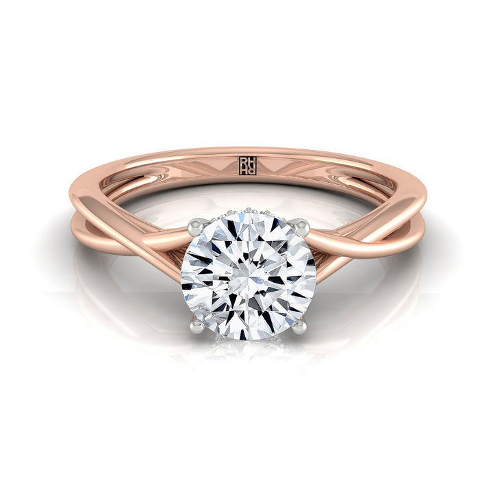 14kr Round Twisted Shank Double Hidden Halo Solitaire Engagement Ring With 28 Prong Set Round Diamonds
