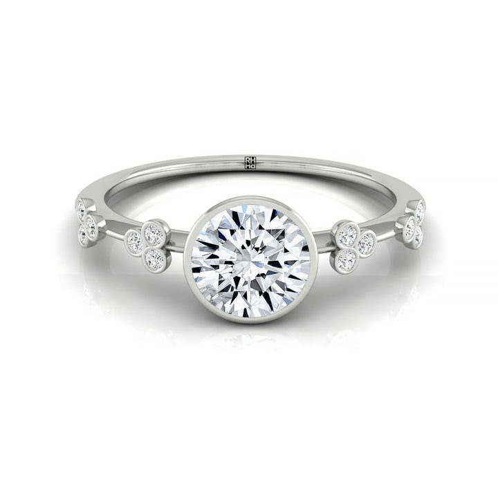 14kw Bezel Set Round Engagement Ring With 12 Clover Bezel Set Round Diamonds On Shank