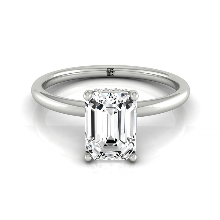 14kw Emerald Double Hidden Halo Solitaire Engagement Ring With 24 Prong Set Round Diamonds