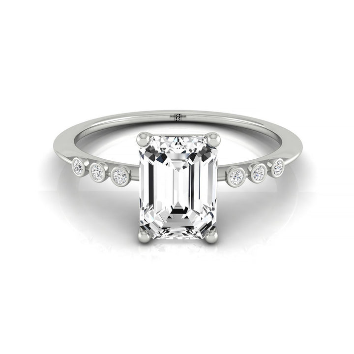 14kw Emerald Engagement Ring With 6 Bezel Set Round Diamonds On Shank