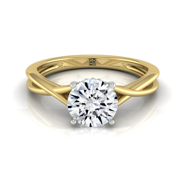 14ky Round Twisted Shank Double Hidden Halo Solitaire Engagement Ring With 28 Prong Set Round Diamonds