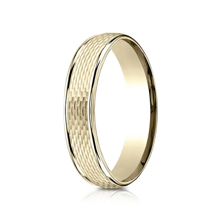 Both Refined And Whimsical, This 18 Karat Yellow Gold 4.5mm Comfort-fit Round Edge Design Band Features An Ornamental Mesh Center.