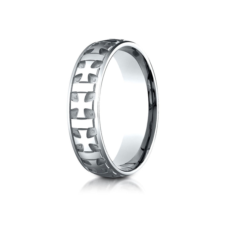 18k White Gold 6mm Comfort-fit Gaelic Cross Carved Design Band