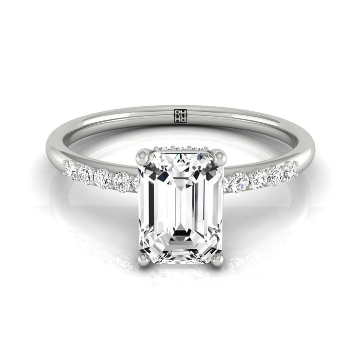 18k White Gold Emerald Double Hidden Halo Quarter Engagement Ring- 1/25ctw