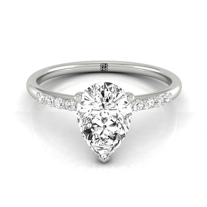 18k White Gold Pear Double Hidden Halo Quarter Shank Engagement Ring - 1/25ctw