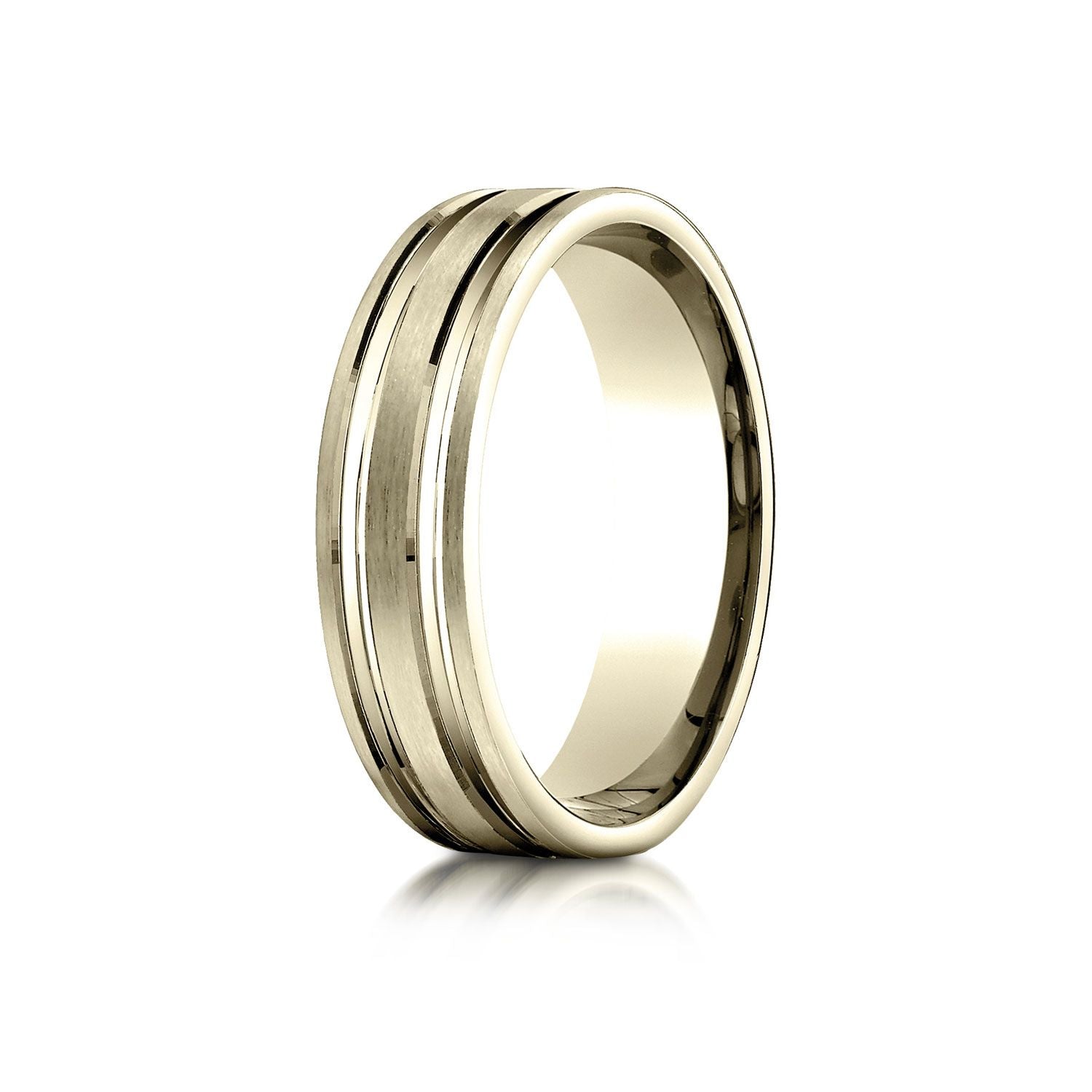 18k Yellow Gold 6mm Comfort-fit Satin-finished With Parallel Grooves Carved Design Band