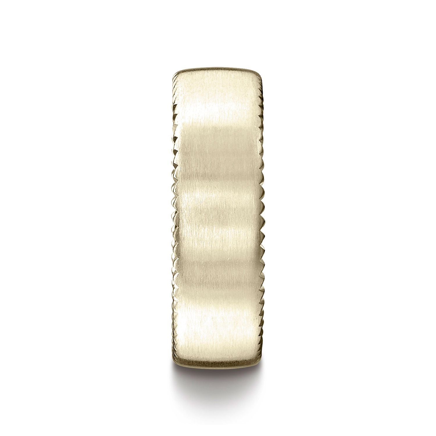 18k Yellow Gold 7.5mm Comfort-fit Satin-finished Rivet Coin Edging Carved Design Band