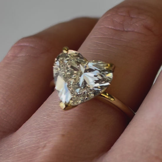 18K Yellow Gold Heart Shape 4.9 Carat Lab Grown (LG605350781) Center Rounded Comfort Fit Solitaire Engagement Ring