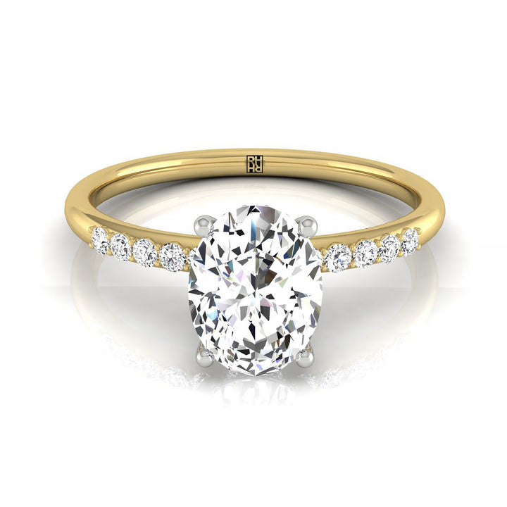 18k Yellow Gold Oval Double Hidden Halo Quarter Shank Engagement Ring - 1/25ctw