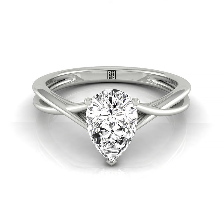 18kw Pear Twisted Shank Hidden Halo Solitaire Engagement Ring With 17 Prong Set Round Diamonds Sz 7.5