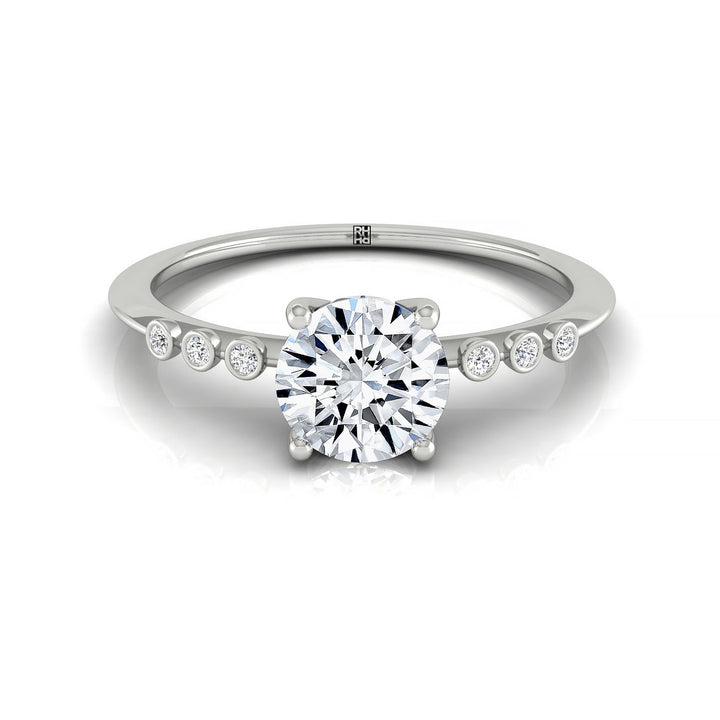 18kw Round Engagement Ring With 6 Bezel Set Round Diamonds On Shank